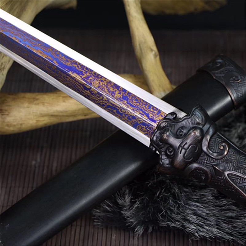 Espada de Acero de Alto Manganeso con Acabado Azulado y Ébano