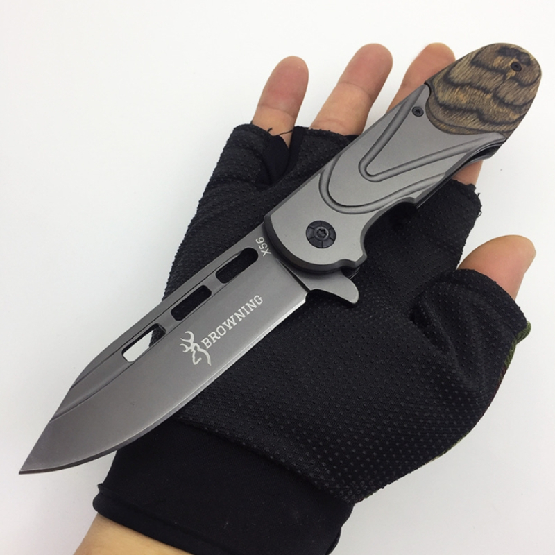Navaja Táctica Browning X56 Militar Supervivencia Camping Gris Oscuro